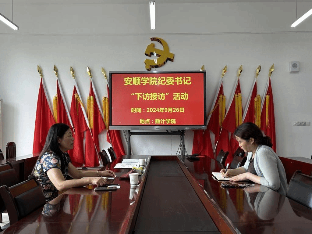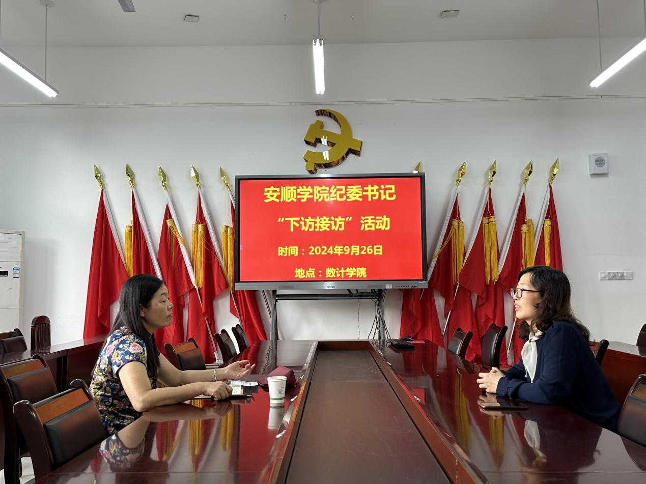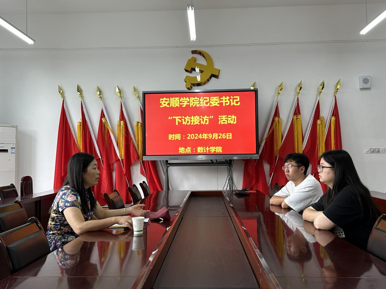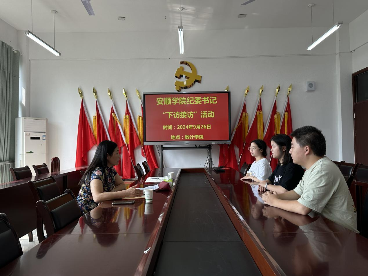 2024年9月26日,安顺学院党委委员、纪委书记、监察专员蔡红英到数学与计算机科学学院开展“下访接访”活动,并深入调研学院基层党建、意识形态、学科专业建设、师资队伍、审核评估、学生管理和服务等方面工作情况。活动中,蔡红英与师生进行了面对面交流,广泛收集了师生反映的问题,并将有关意见建议向学院负责人进行了反馈并提出工作要求。