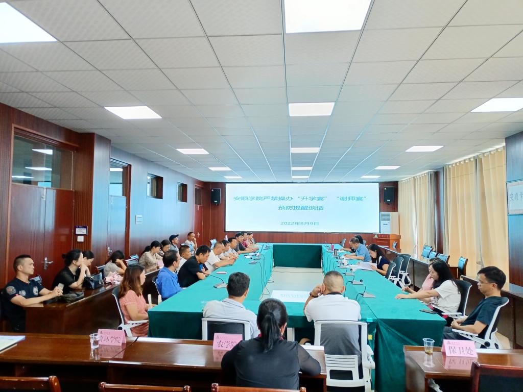 2022年8月9日上午,安顺学院就严禁操办“升学宴”“谢师宴”问题,对全校2022年有子女中、高考升学的干部职工进行了集体预防提醒谈话。