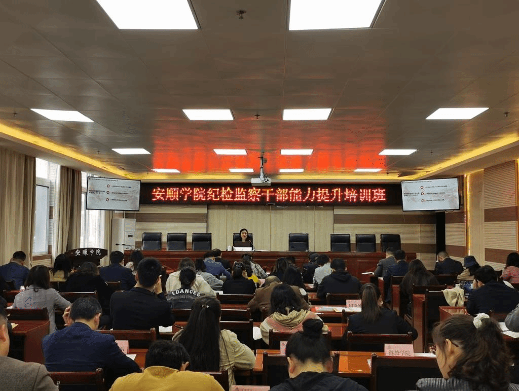2022年5月24日,安顺学院纪委 监察专员办公室举办全校纪检监察干部能力提升培训班。安顺学院纪委书记 监察专员蔡红英出席,校纪委委员、校纪委校监察专员办全体干部、各二级党委、党支部纪检委员共60余人参加培训。培训由校纪委综合室副主任周旭主持。