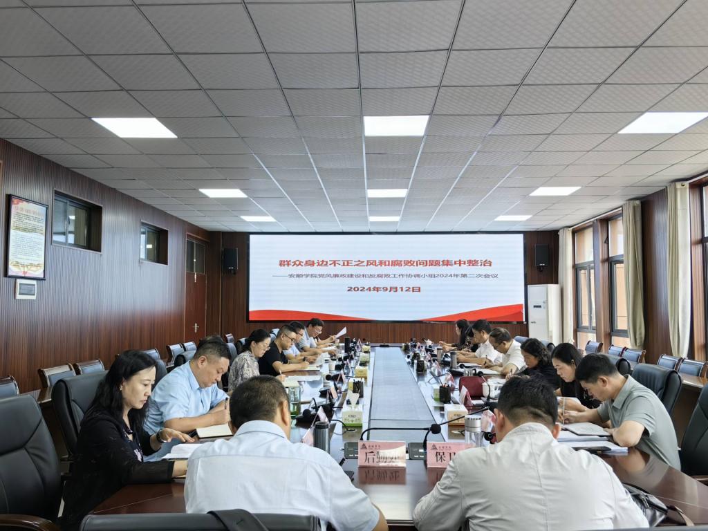 2024年9月12日上午,安顺学院党风廉政建设和反腐败工作协调小组2024年第二次会议在安道楼五楼第一会议室召开,会议专题研究“群众身边不正之风和腐败问题集中整治”工作。安顺学院党委书记罗荣彬、院长曾丽和有关校领导出席会议,学校党风廉政建设和反腐败工作协调小组成员单位参会,后勤处、发规处、教务处、保卫处主要负责人列席。会议由安顺学院党委副书记陶文彩主持。