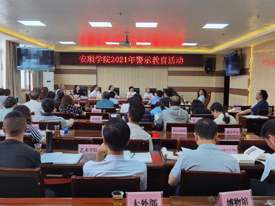 6月25日上午,安顺学院在特教大楼开展2021年警示教育活动。校党委领导班子成员出席会议。各二级学院党委书记、院长,各职能部门主要负责人参加会议。